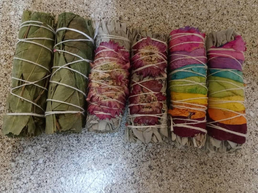 7 chakra rose petals provide the added blessings of love, happiness, and new beginnings to the white sage making this smudge blend perfect for energy clearing and cleansing while ensuring that your positive intentions fill the energy void left behind during your clearing your space and yourself. Align your chakras and balance your space with the smudge blend.