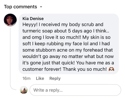 Turmeric Scrub is a powerful, but gentle turmeric-based exfoliator that naturally buffs away surface dark spots that remain after acne breakouts and hyperpigmentation. Anti-inflammatory & antioxidant that gives skin a natural glow as well as oils that have a zero comedogenic rating, meaning that it won’t clog pores. All the goodness of organic turmeric powder with little to no staining of the skin, regardless of skin tone☺